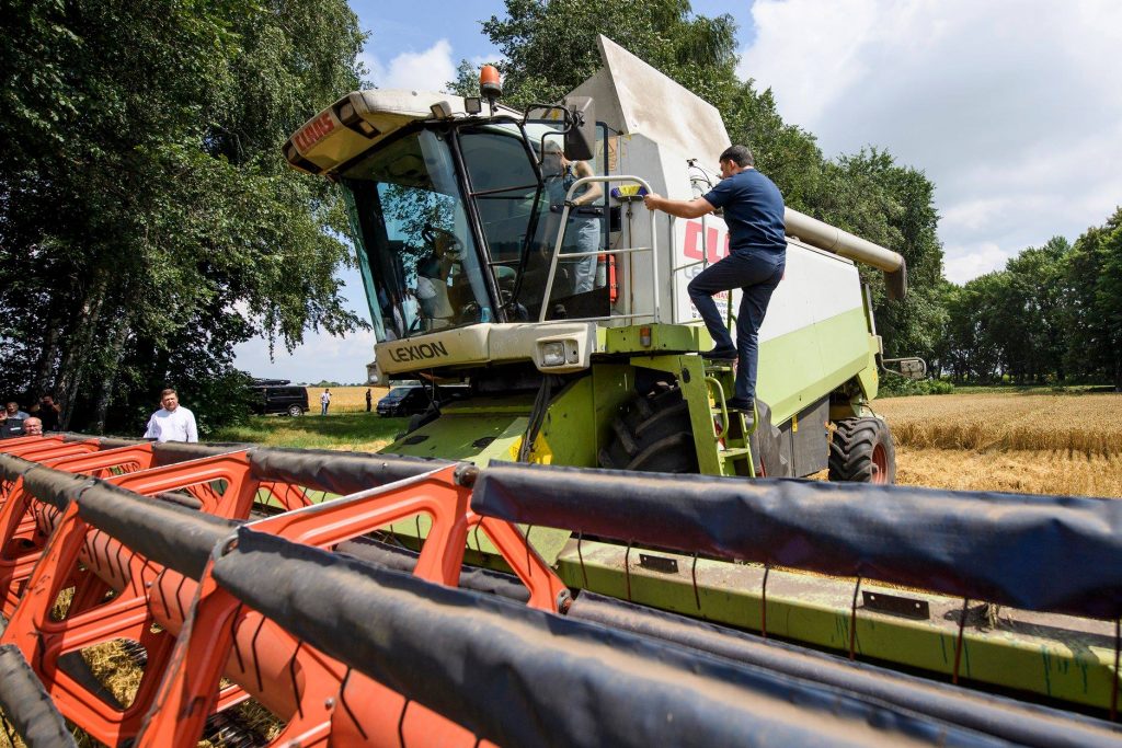 Премьер-министр Владимир Гройсман сегодня не только подкрепился на одном из агропредприятий Киевской области, но и прокатился на комбайне.