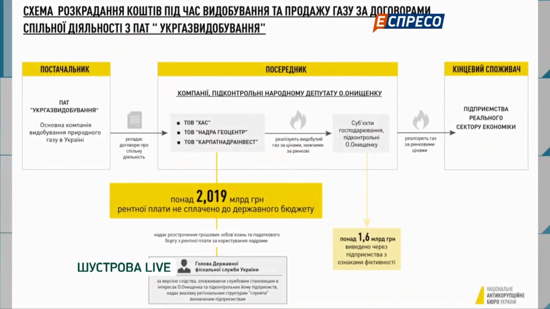 Фирмы беглого народного депутата Александра Онищенко задолжали государству около 3 млрд гривен, из которых 1,3 млрд гривен – долг по ренте. В частности, речь идет о компаниях "Надра Геоцентр", "Хас", "Карпатнадраинвест", "Цевей" и "Пласт".
