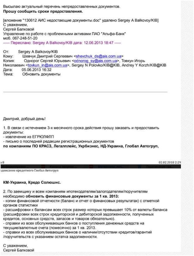 Согласование подписания меморандума со стороны Альфы велось не один день, в лице сотрудника Сергея Балкового, представителя управления по работе с проблемными активами банка.