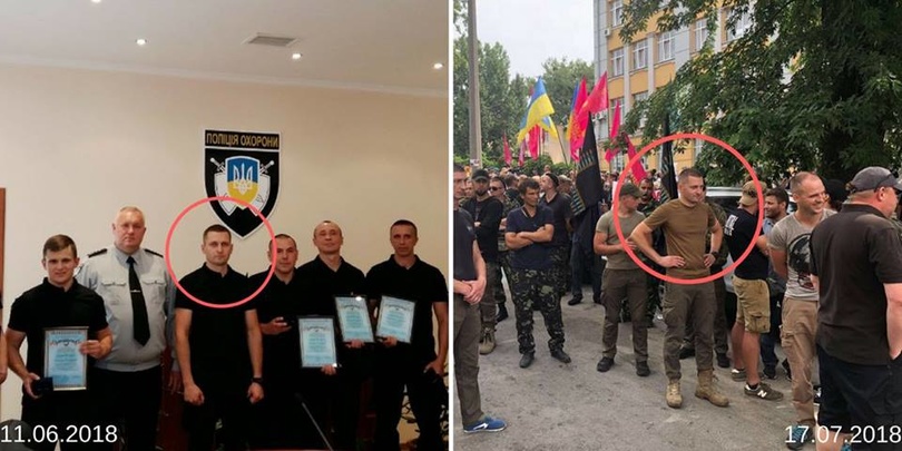 Шабунин приводит фото лиц, которые были зафиксированы среди нападающих, и фото этих же лиц в форме полицейских. Фото провокаторов взято с официального сайта Полиции охраны МВД:
