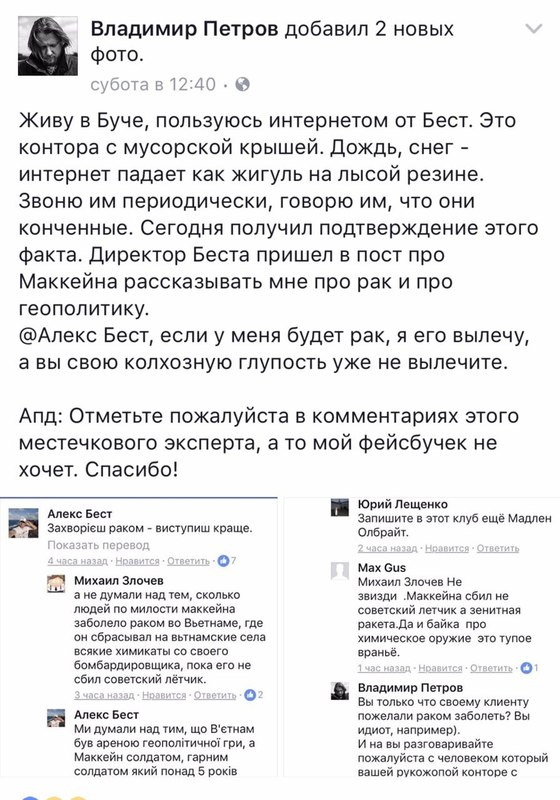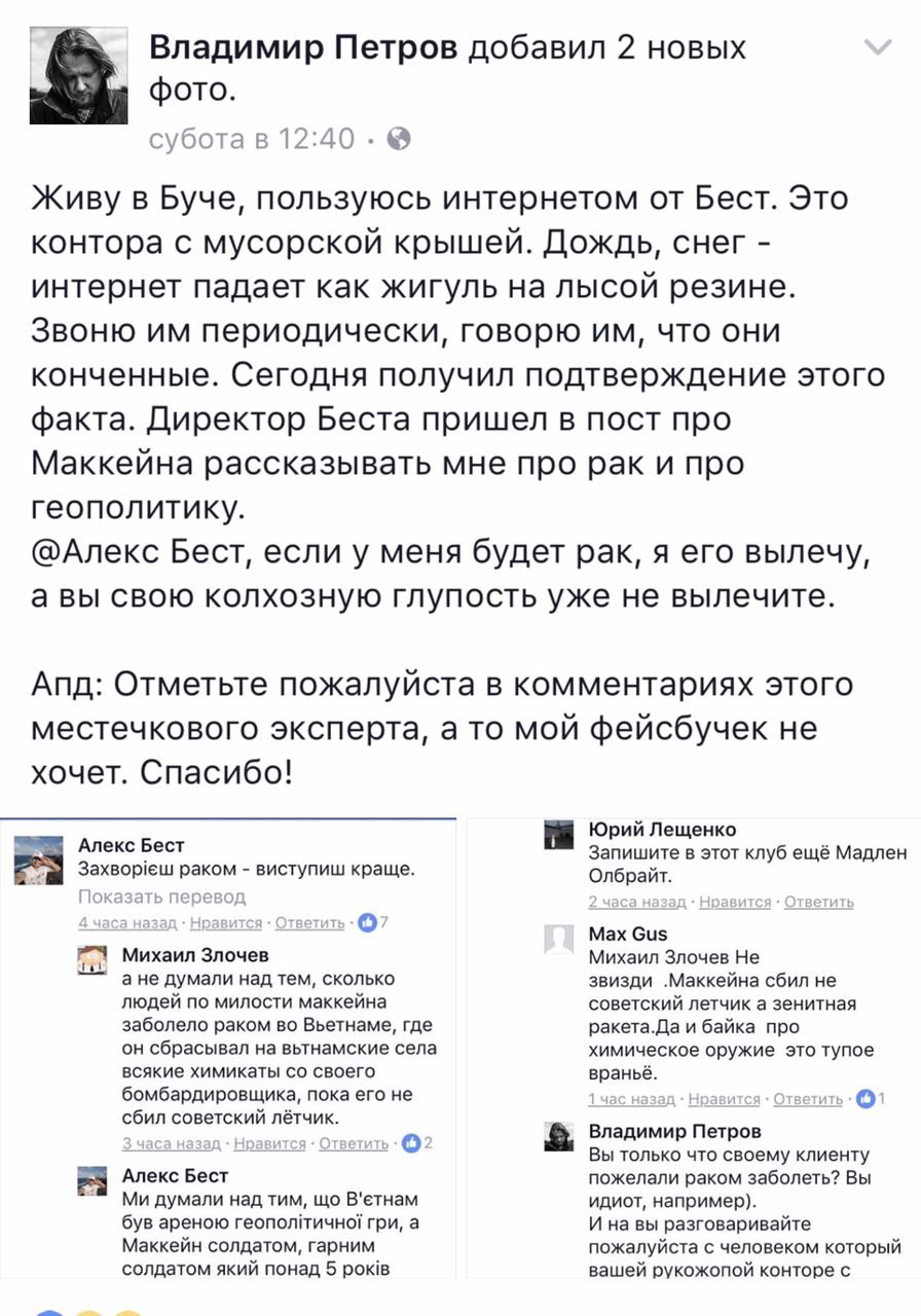 А в інтернеті з’явилася інформація, що через значні борги Олексій Зіневич готовий продати провайдера «Бест» за 1,5 млн. доларів. Проте, у Зіневича почалися серйозні фінансові проблеми і він виставляє на продаж провайдера “Бест” за 800 тисяч доларів.