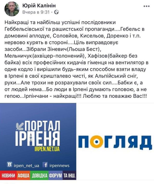 Тож як далеко може зайти Зіневич у своїх мстивих планах можна ще здогадуватися, але те, що це буде дуже далеко від порядності, – вже очевидно. Адже людині потрібно прокласти свої кабелі по всіх містах та селах Приірпіння, щоб заробляти гроші. А всі, хто буде заважати монополісту – отримають по сюжету на каналі “Погляд”. Або їх заблокують, як “Правду Ірпеня”. Або відключать, як Костянтина Коверзнєва. Або побажають захворіти на рак, як Володимиру Петрову. Або поб’ють, як Людмилу Демченко.