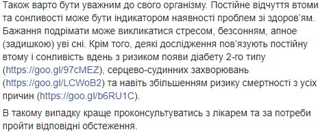 "Постоянное чувство усталости и сонливости может быть индикатором наличия проблем со здоровьем. Желание вздремнуть может вызываться стрессом, бессонницей, апноэ (одышкой) во сне. Кроме того, некоторые исследования связывают постоянную усталость и сонливость днем с риском появления диабета 2-го типа, сердечно-сосудистых заболеваний и увеличением риска смертности от всех причин", - добавила Супрун.