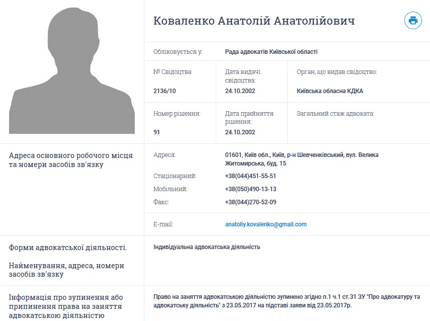 У 2014 році на скандальному з’їзді адвокатів у місті Мукачево Анатолія Анатолійовича Коваленка було обрано представником від адвокатури до складу Кваліфікаційно-дисциплінарної комісії прокуратури. Сама ж Комісія розпочала свою роботу лише у 2017 році.