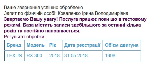 Натомість у власності Ірини Володимирівни жодного рухомого майна незадекларовано. Та якщо вірити витягу з Єдиного державного реєстру МВС, то 31 травня 2018 вона року придбала LEXUS RX 300 того ж року випуску. Ціна такого авто стартує від 1,4 млн грн.