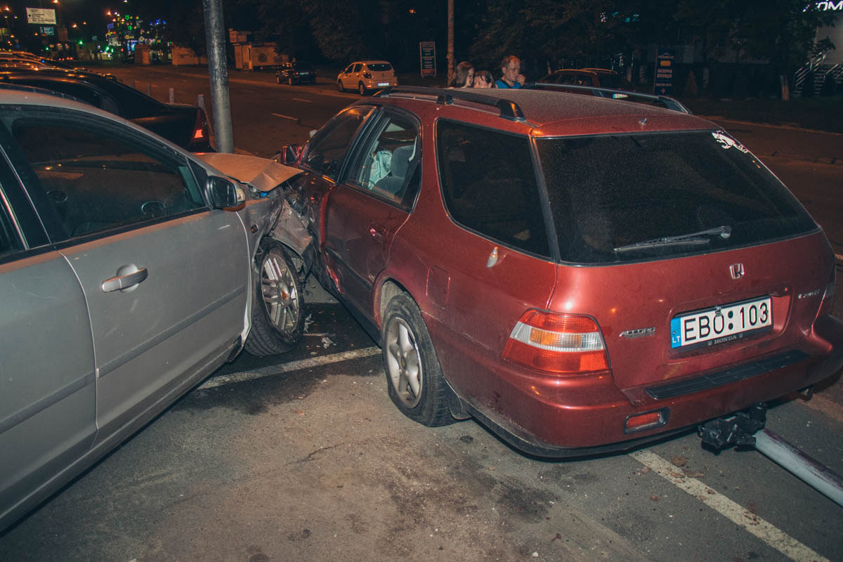 По словам полицейских, водитель Honda Accord на еврономерах двигался по Оболонскому проспекту в сторону станции метро "Оболонь" и протаранил припаркованный у обочины автомобиль Skoda Octavia. От удара Honda отбросило в едущий по соседней полосе Volkswagen Passat, после чего обе машины влетели на парковку ТРЦ Dream Town. Там они столкнулись с четырьмя припаркованными автомобилями.