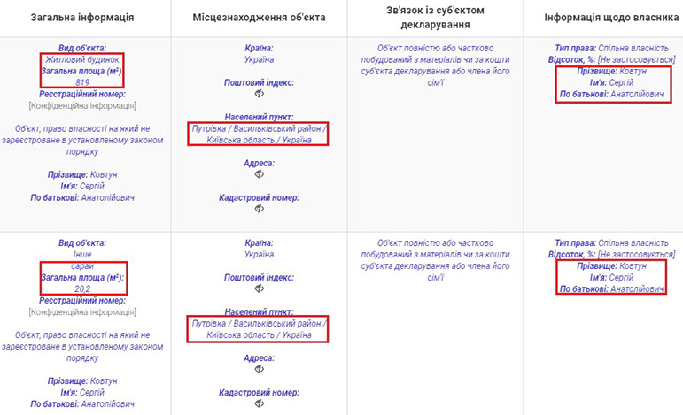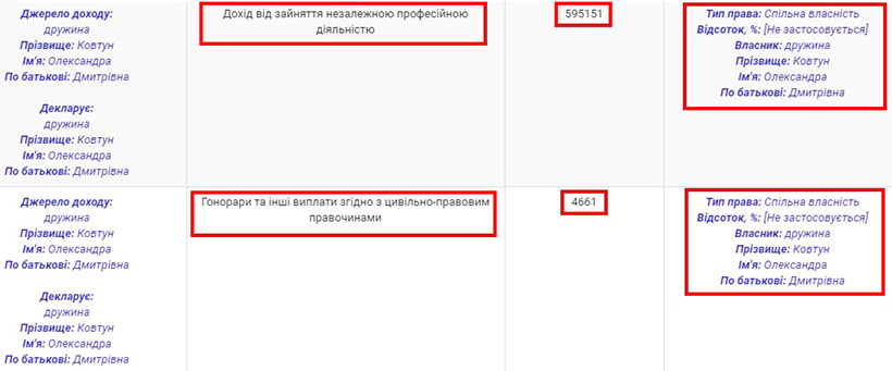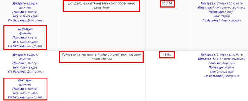 Ми проаналізували декларації Сергія Ковтуна за 2014201520162017 роки, а також форми змін до них. Сергій Анатолійович декларує заробітну плату з процентами від банківських вкладів, а дружина – дохід від нотаріальної діяльності. Її сумарний прибуток за три роки склав 2 476 878 грн.