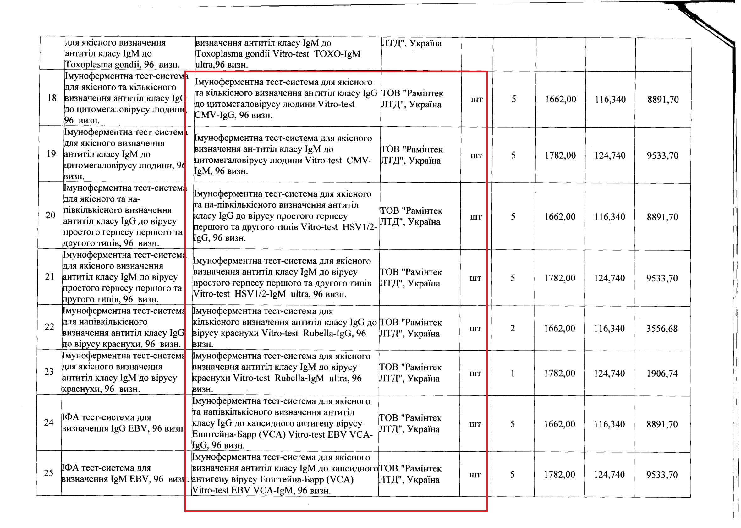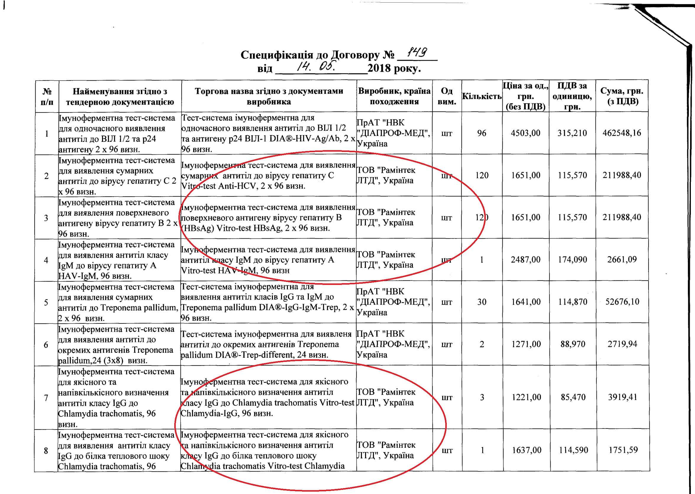 За последние месяцы киевский Главный военный клинический госпиталь заключил через систему государственных закупок Prozorro несколько договоров о приобретении поддельных диагностических тест-систем «Vitro-Test» производства компании «Раминтек ЛТД», последний из которых датирован маем 2018 года.