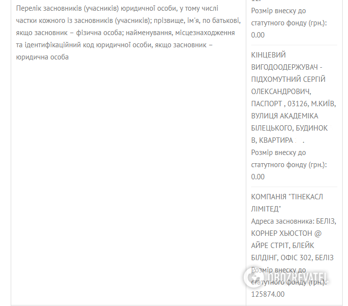 В Едином государственном реестре физических лиц и лиц-предпринимателей указано, что основателями (участниками) ООО "Евро 2000" являются Сергей Александрович Пидхомутный, Людмила Васильевна Пидхомутная, а также компания "Тинекасл Лимитед". Адрес последней – государство Белиз, что на восточном побережье Центральной Америки.