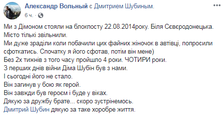 Позже по фотографиям, опубликованным сепаратистами, в чьи руки попало тело бойца, был опознан Дмитрий Украинский.