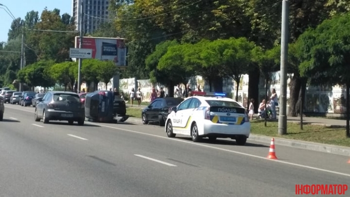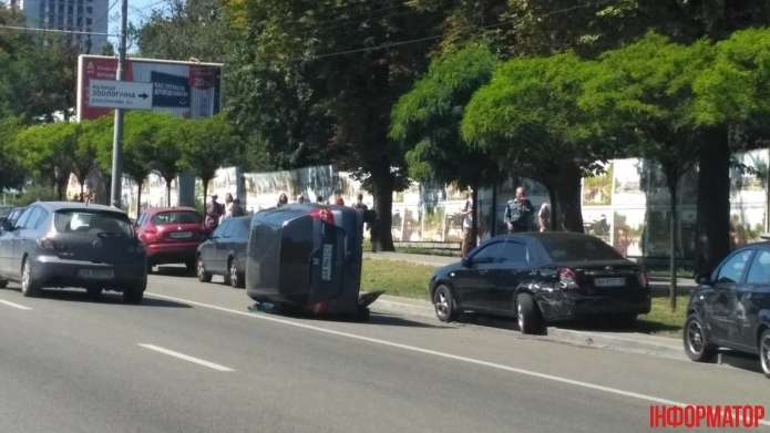В Киеве возле зоопарка “Subaru” влетел в припаркованое авто и перевернулся