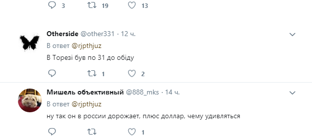 «Ну, а что вы хотите, мы же живем как в России, вот и соответствуем», «Слышала, что с 14 августа будет еще одно повышение, газ чуть ли не до 40 рублей, а бензин будет стоить за 60», «Нас тоже предупредили, что бензин будет серьезно дорожать», «Снова армагеддон наступает, все будем на троллейбусе ездить», «Вчера заправлялся газом по 31 рублю, сегодня уже 35. Я в шоке ребята», «У нас вчера 29 был, сегодня 34, ну, а х**е, республика, где все для народа», «Бесит то, что нам ничего не говорят, в чем причина такого резкого повышения, кто знает», «Причина в том, что власти зажрались, испытывают наше терпение».
