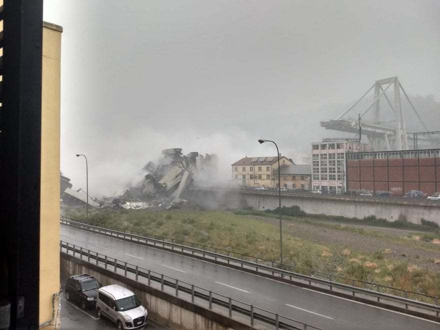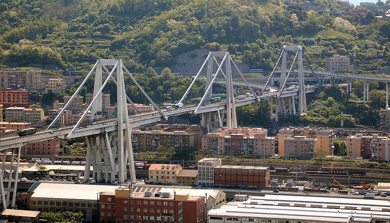 Обрушившийся участок моста Моранди проходила через густонаселенный район. Предполагается, что причиной обрушения могло стать ослабление несущих конструкций.