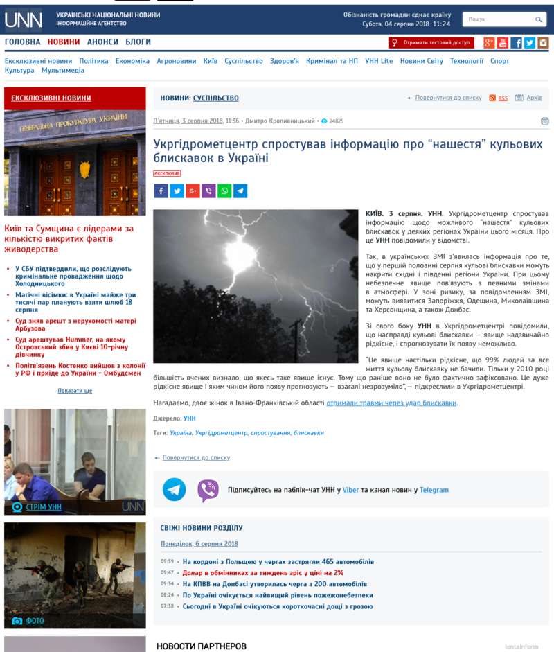3 серпня після «нашестя кульових блискавок» у «ТСН» та їхніх послідовників,інформаційна агенція УНН спростувала новину коментарями представників Укргідрометцентру. Це прочитали понад 30 тисяч українців. Інформацію поширили близько 25 ЗМІ, у тому числі й ті, хто писав про «нашестя».