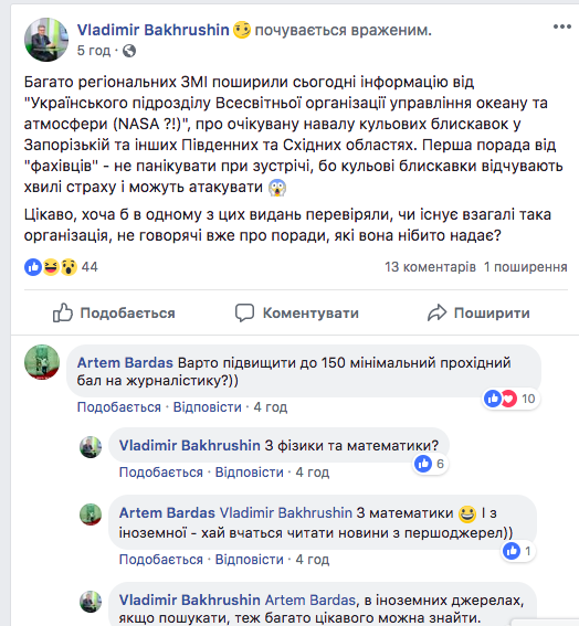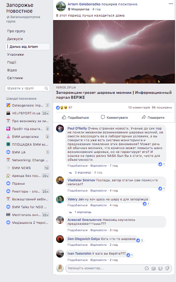 Жодним іншим способом ця інформація не поширювалася. Бум в інфопросторі та в соціальних мережах — наслідок гонитви за оперативністю та гучністю замість перевірки джерела інформації та коментарів експертів. Для цього достатньо було зателефонувати в Укргідрометцентр або в будь-який із вишів, де є кафедра фізики. У маленьких містах — достатньо знайти вчителя фізики, який пояснив би природу виникнення кульових блискавок та абсурдність такого прогнозу.