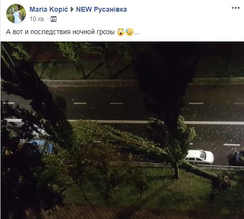 Жители Киева поделились своими впечатлениями в соцсетях, опубликовав записи и фотографии невероятной грозы.