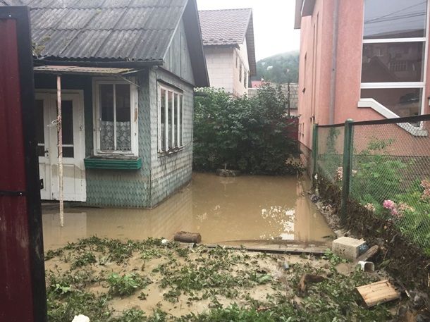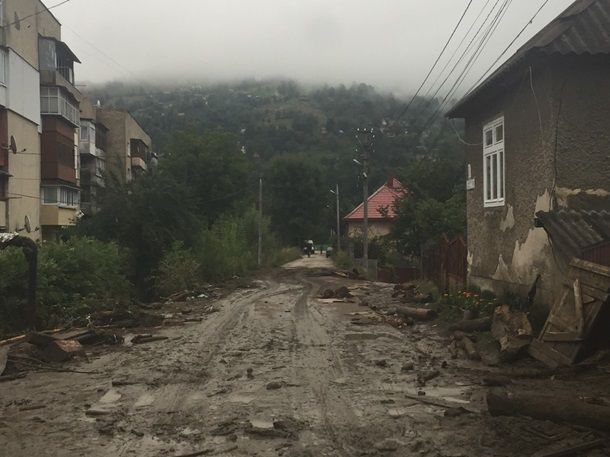 По улицам Рахова текли стремительные потоки воды. Ливень затопил дворы, автомобили тонули в лужах.