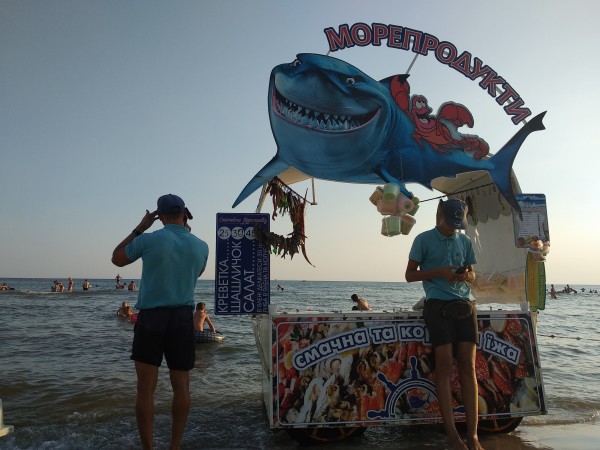 Два банкомата «Приватбанка» на весь поселок (других банков просто нет). В одной такой очереди я простояла полчаса. Некоторые занимает очередь к банкомату и бегут купаться. Цены в кафе дотягивают до киевских, но персонал не особо дружелюбен. Возможность рассчитаться карточкой в таких заведениях - скорее исключение, чем правило, поэтому явление очередей понятно.
