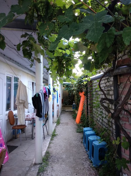 Их пансионат расположен в престижной части поселка, названной Аэродромом (когда-то здесь был аэродром). До моря отсюда - 10 минут пешком. Сейчас участок 15 сотых здесь стоит 15 000 долларов. Виллы растут одна за другой.