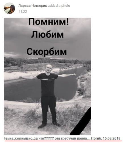 24-летний Артем Четверик был убит 15 августа, уточнил офицер ВСУ Анатолий Штефан на своей странице в Facebook.
