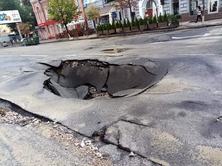 Фото огромной воронки посреди дороги опубликовал в Facebook пользователь Алексей Алексеев.