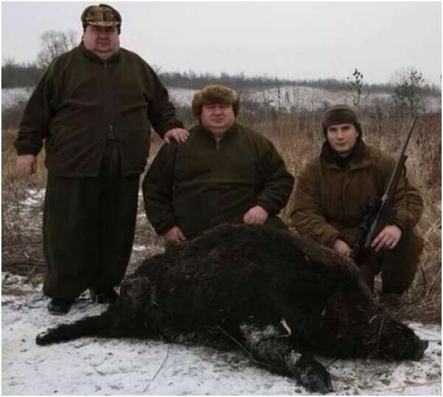 На фото братья Абрамовы с сыном Януковича Александром. Кстати, после публикации этого снимка, ему дали название «Три кабана и охотник».