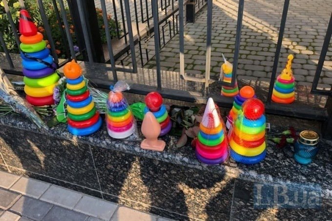 Украинцы своеобразно почтили память умершего от онкологического заболевания певца, народного артиста СССР Иосифа Кобзона – принесли под российское посольство в Киевепорванный баян, парики и детские игрушки-пирамидки. Фото на своей странице в Twitterобнародовал блогер Юрий Гудыменко.
