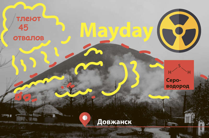 В окрестностях Довжанска Луганской области расположены 45 тлеющих отвалов. В результате этого концентрация сероводорода в городе в 45 раз превышает допустимую норму.