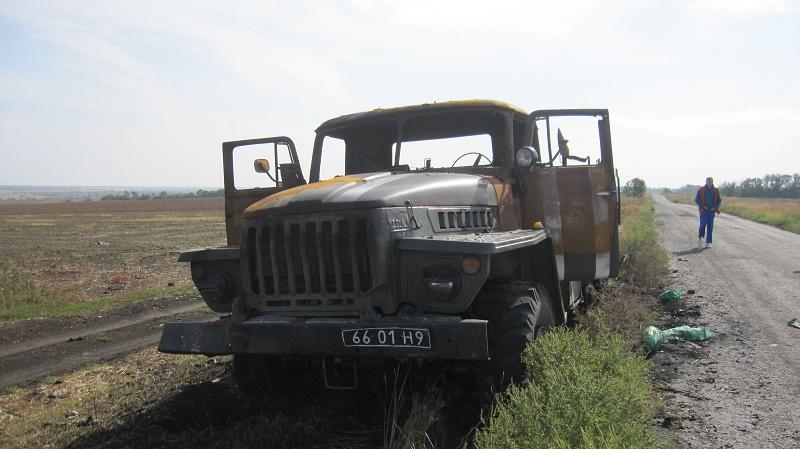 «Урал», рядом с которым погибли 4 бойца 42-го территориального батальона (фото Павла Нетесова)
