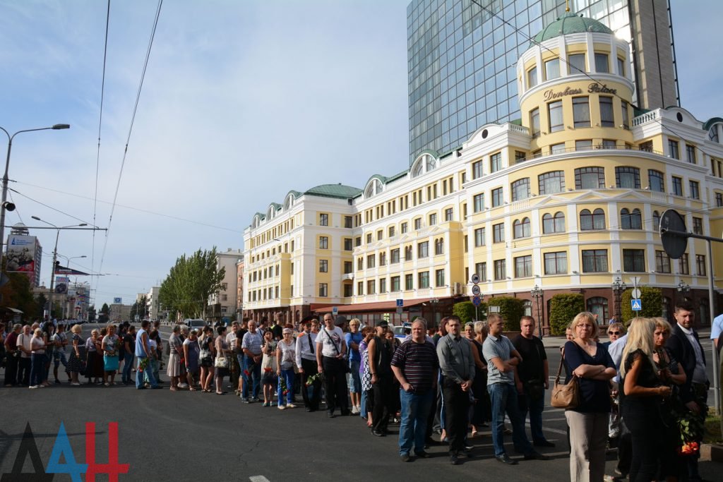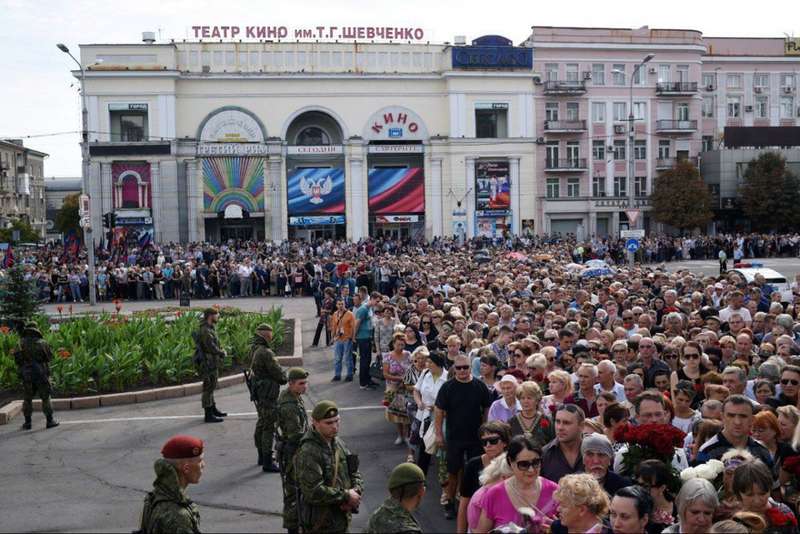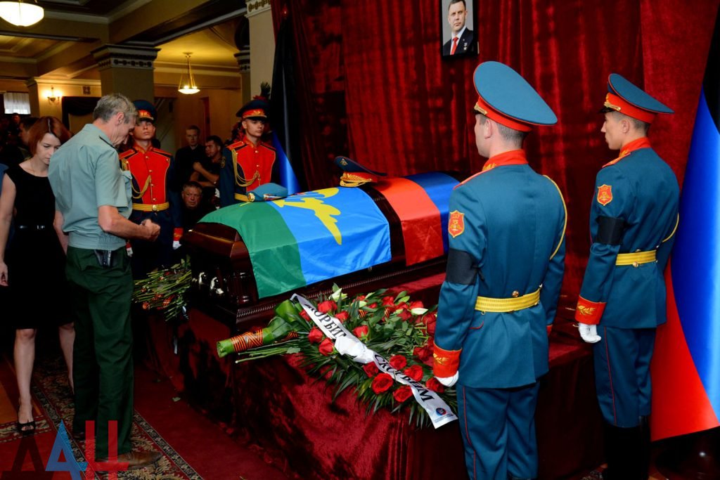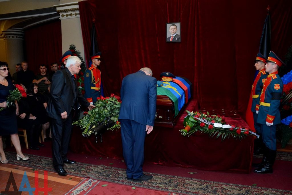 Захарченко похоронят в закрытом гробу (он умер в результате травмы головы). Простится с ним пришел новоназначенный главарь «республики» Дмитрий Трапезников, а также Александр Бородай и пострадавший от взрыва «министр доходов» Александр Тимофеев (ранее ряд СМИ писали, что он погиб).