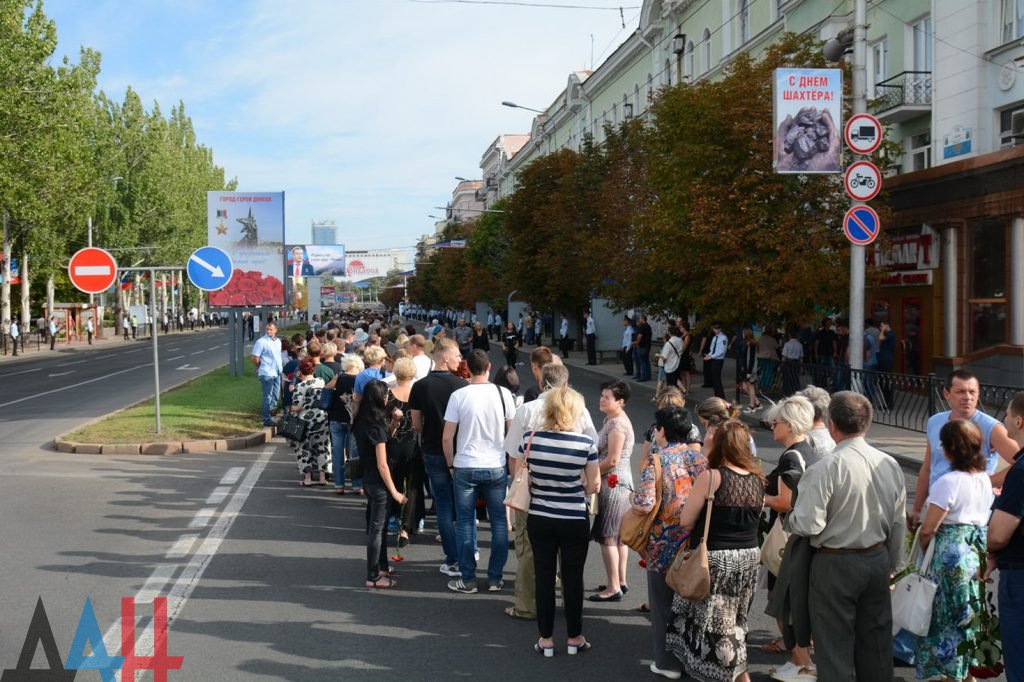 Церемония прошла в академическом театре опера и балета. К зданию выстроились очередь из местных жителей-бюджетников, которых сгоняли боевики.