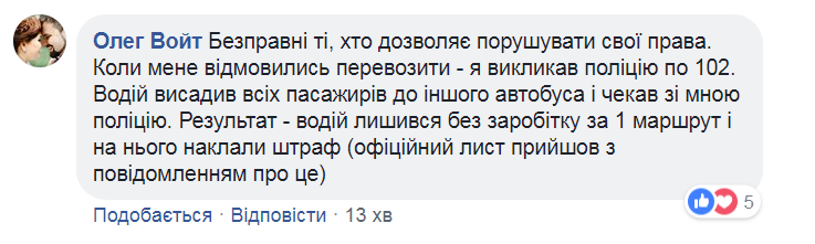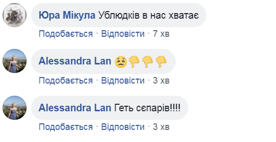 "Может, этот крик души матери погибшего бойца долетит до нужных ушей! Позор таким водителям и таким людям!", "Надо было сжечь автобус вместе со всем тем быдлом. И полиция бы сразу приехала, и мудаков бы в стране меньше стало", "Быдло, быдло, быдло", "Гниды! Таких уродов, как этот водила и вся остальных биомасса, нужно наказывать по справeдливости, а нe по закону!", "Только пи*дить", "Пусть на своей шкуре почувствуют вашу боль. Желаю им бесплатного проезда по таком же поводу, как у вас. Извините за грубость", "Ужас", "Ублюдков у нас хватает", "Долой сепаров!" — пишут возмущенные пользователи.