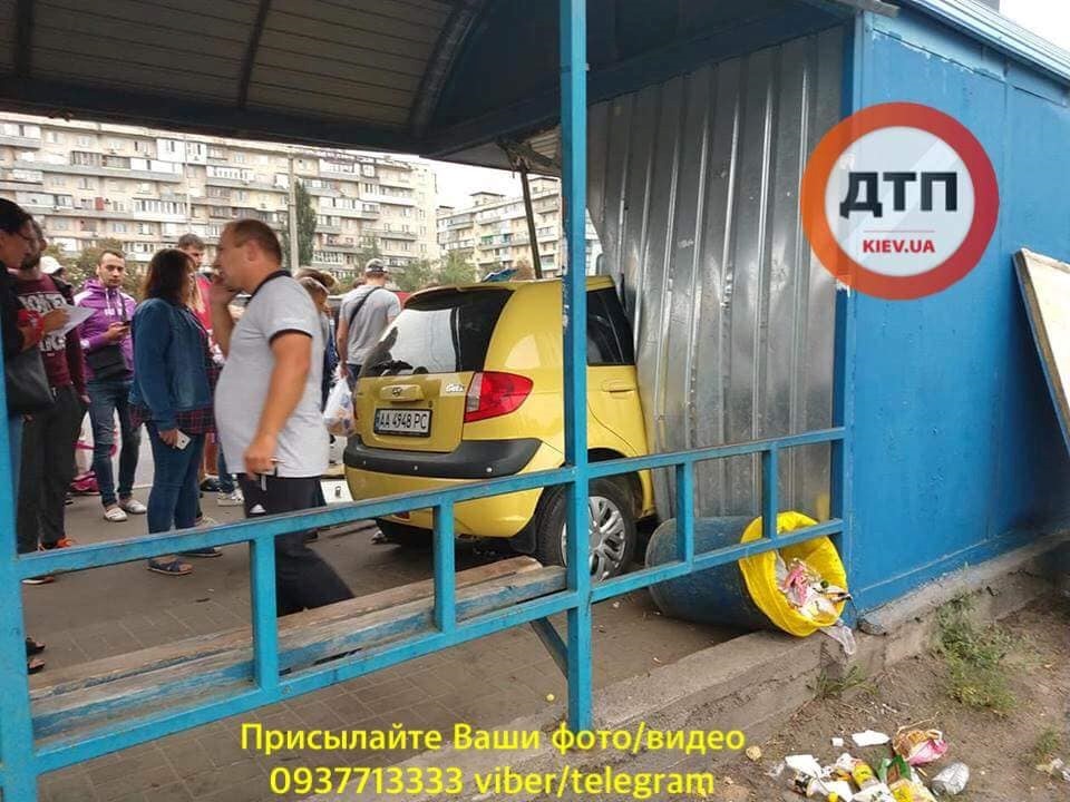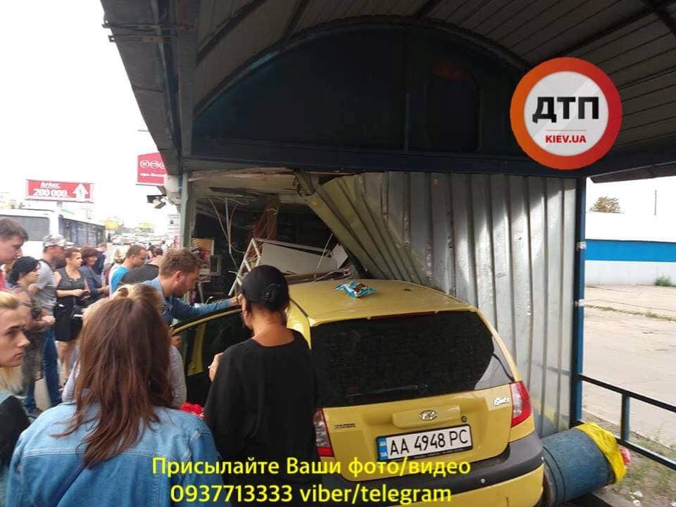 Автомобиль Hyundai влетел на остановку общественного транспорта и врезался в торговый киоск. Инцидент случился на Петропавловской Борщаговке в пятницу, 7 сентября. Об этом передает dtp.kiev.ua.