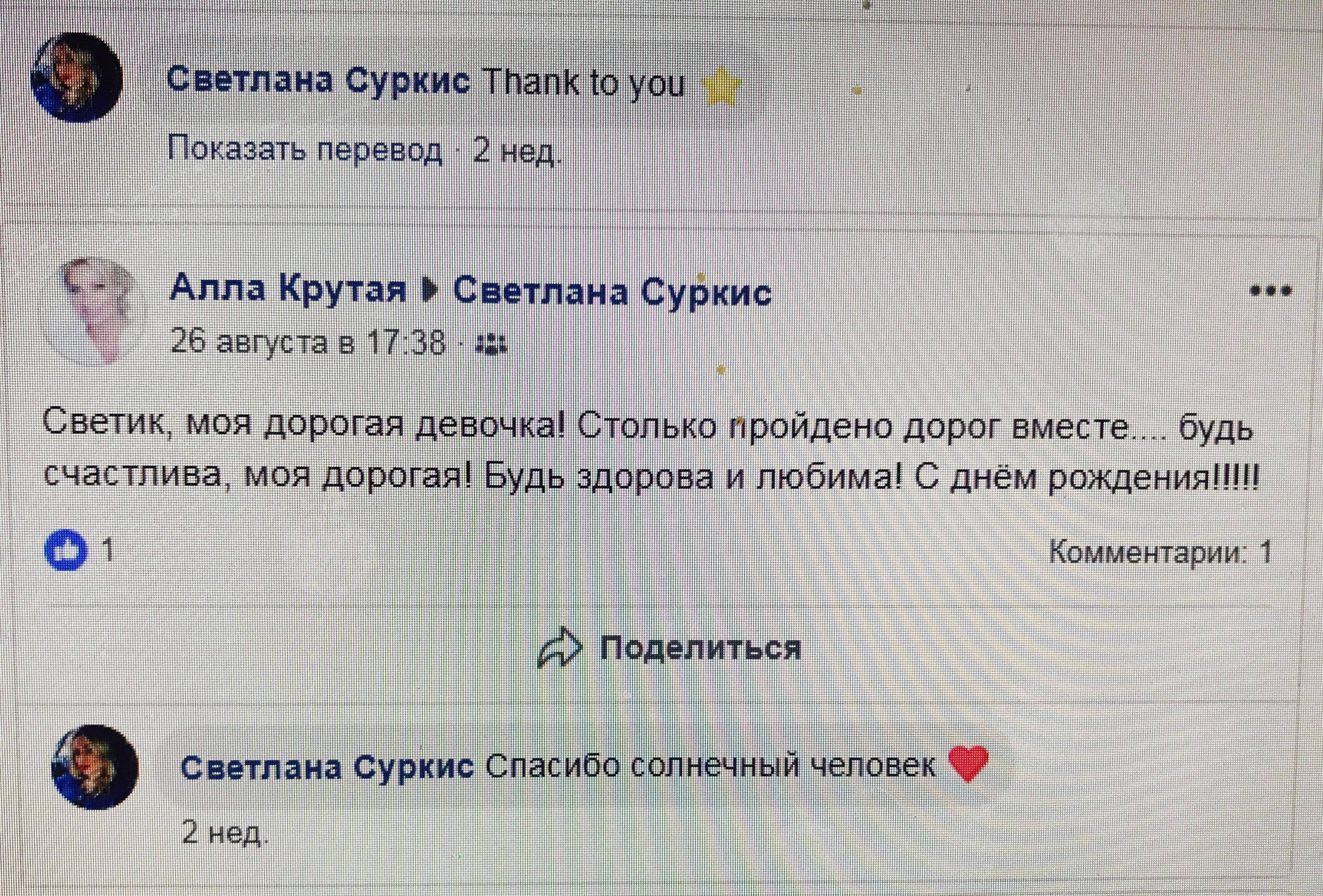 «Светик, моя дорогая девочка! Столько пройдено дорог вместе.... будь счастлива, моя дорогая. Будь здорова и любима! С днём рождения!!!!!», - написала она.