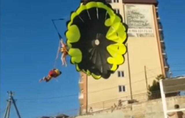 Инцидент произошел 22 сентября на пляже поселка Джубга. Молодая пара занималась парасейлингом - полетом на парашюте за катером. Вероятно, парашютистов бросило на провода сильным порывом ветра.