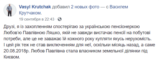 Мать лидера "Радикальной партии" Олега Ляшко Любовь Павловна приобрела участок земли в селе Богдановка в Киевской области.