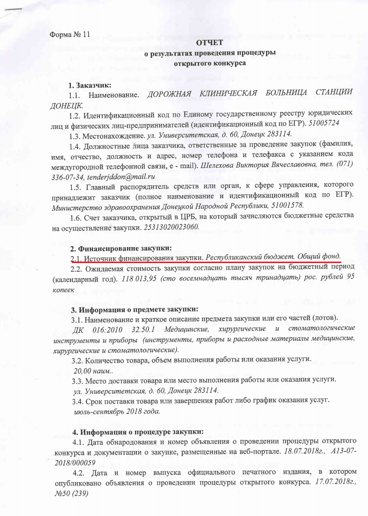 Це відомо зі “звіту про результати проведення відкритого конкурсу”, де вказана дата укладання договору з ТОВ «Медикодон Плюс» (ідентифікаційний код 40304357) на суму понад 100 тисяч рос. рублів.