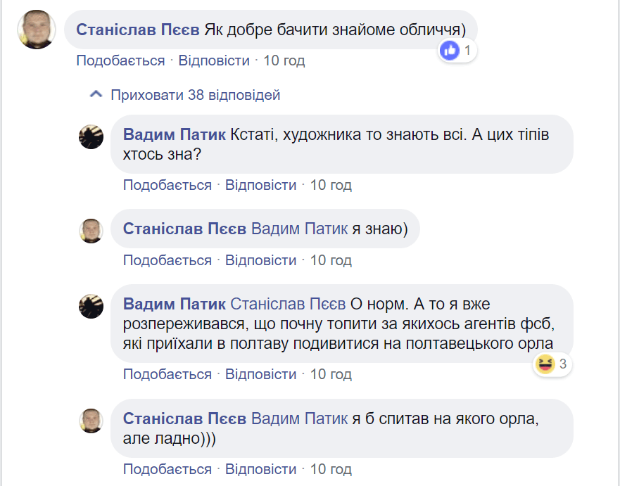 Нам не вдалося повністю деанонімізувати молодиків у футболках з Гітлером. Проте сам інцидент викликав жваву дискусію у Facebook. Там до обговорення теми підключився відомий у Полтаві активіст — представник партії «Національний корпус» Станіслав Пєєв. Він похизувався тим, що знайомий з хлопцями. Ми звернулися до активіста за контактами цих людей, щоб висвітлити і їх позицію. Втім, Станіслав таких контактів не надав, хоча й пообіцяв переказати хлопцям, про зацікавленість журналістів.