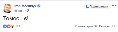 Эту же новость подтвердил на своей странице в Facebook народный депутат от Радикальной партии Олега Ляшко – Игорь Мосийчук.