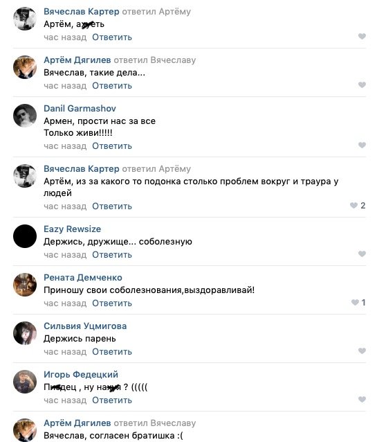 Под этим фото его друзья начали писать комментарии со словами поддержки.
