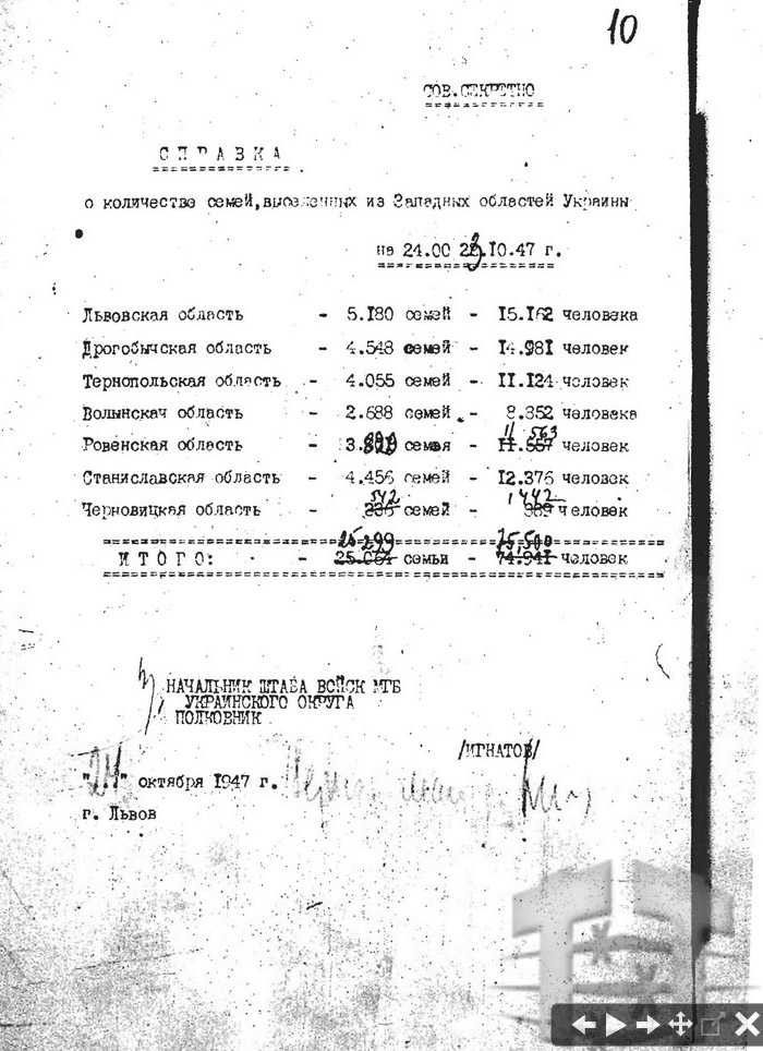Справка про количество семей, выселенных из западных областей Украины — они мешали дружить.