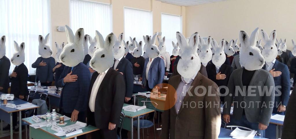 Патріотизм білих і пухнастих зашкалює при виконанні гімну України. І вивітрюється — під час вирішення питань. Зображення — kolo.news