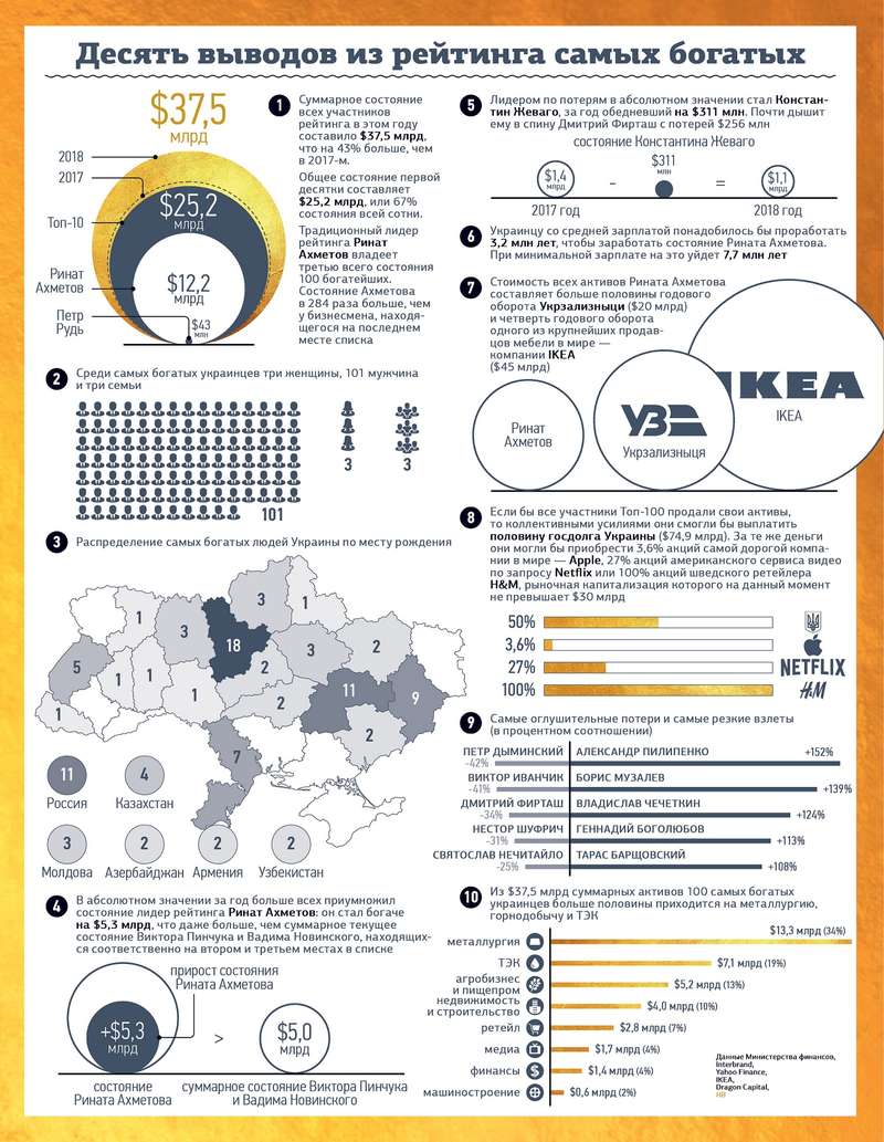 В Украине существуют две реальности. В одной из них ВВП растет черепашьими темпами, а за очередной транш МВФ, способный удержать национальную экономику от коллапса, идут сложнейшие переговоры. В другой реальности 100 самых богатых украинцев увеличили скорость, с которой прирастает их суммарное состояние, – с прошлогодних +33 % до нынешних 43 %. Теперь сотня богатейших соотечественников сконцентрировала в своих руках $37,5 млрд.Иными словами, всего лишь 100 украинцев способны одним махом погасить половину всего госдолга страны.