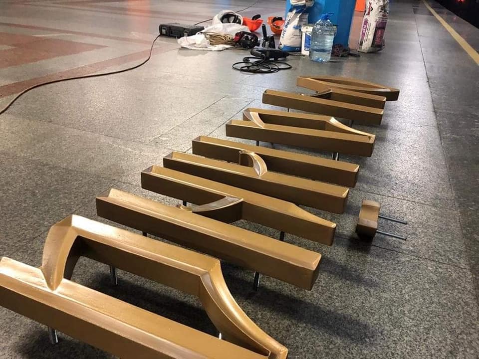 В сообщении говорится, что в ближайшие дни работы по установке алюминиевых букв доведут до конца. А соответственно и полностью завершится процесс переименования станции метро. Решение об изменении названия станции метро "Петровка" на "Почайна" было принято еще в феврале 2018 года.