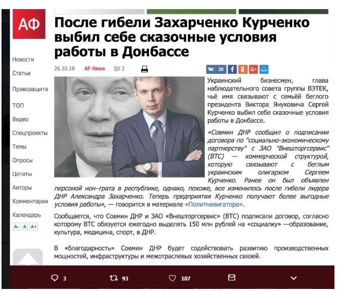 Об этом сообщает НП со ссылкой на Twitter Дениса Казанского. «Что-то сайт «Антифашист» совсем крамолу пишет. Если так дальше пойдет, скоро придется признать, что Захарченко ликвидировала никакая не хунта, а курченковские киллеры. Ишь как заговорили. Уже и Курченко с Януковичем им не такие. Может быть еще напишете, что и Майдан был не зря», — пишет блогер.