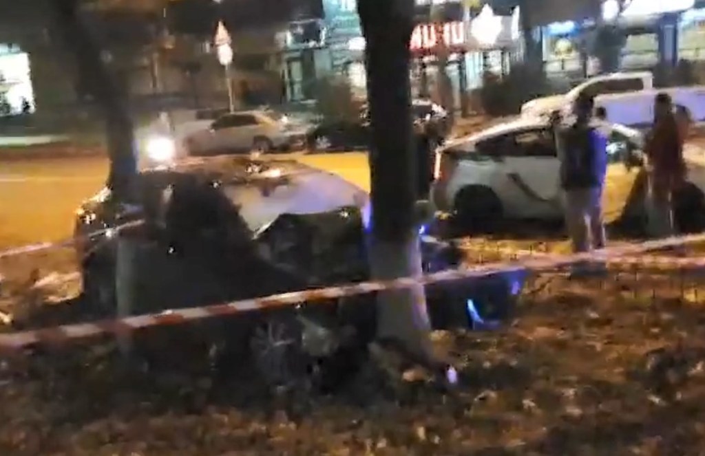 В Киеве вечером 27 октября пьяный водитель врезался в дерево и вылетел на тротуар, чудом не зацепив пешеходов.
