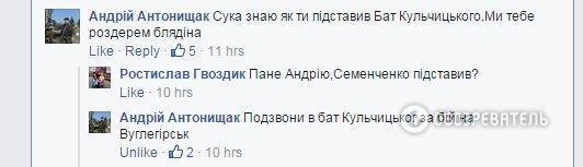 Не сохранил "военную тайну" относительно обстоятельств контузии Семенченко и координатор 1-го батальона Нацгвардии Андрей Антонищак. Он пообещал "разодрать" любимца публики – за то, как тот подставил батальон Кульчицкого в бою за Углегорск.