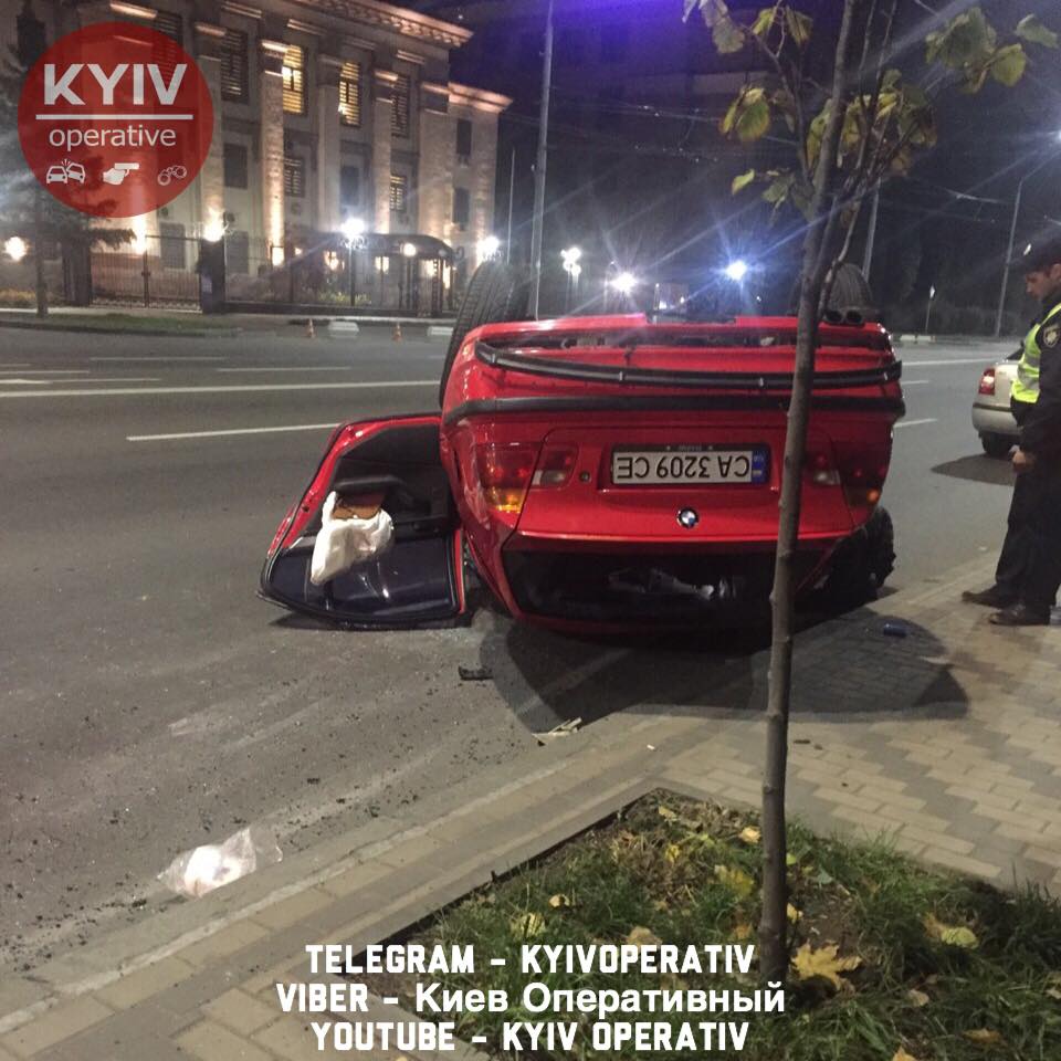 «Нырнули» опять в свою полосу, въехали в Chevrolet, затем в бровку и перевернулись. Дружок водилы сразу же убежал, а сам водила не успел. Задержали. А, ну и главная деталь – 1,93 промилле в организме у водителя BMW.