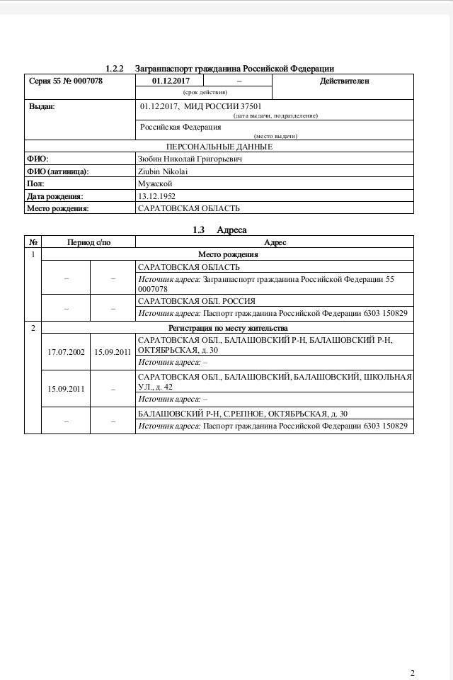 Згідно з інформацією, яка вказана у документах, опублікованих народним депутатом Євгеном Дейдеєм, Микола Зюбін народився 13 грудня 1952 року у селі Михайлівка Балашовського району Саратовської області РФ. У цьому ж Балашовському районі він наразі зареєстрований і проживає.
