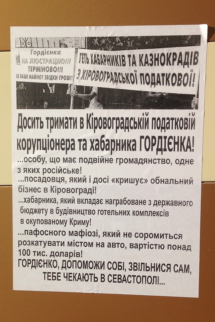 Гордиенко удостоился даже акций протеста и поездок активистов в Киев, где требовали его люстрации.